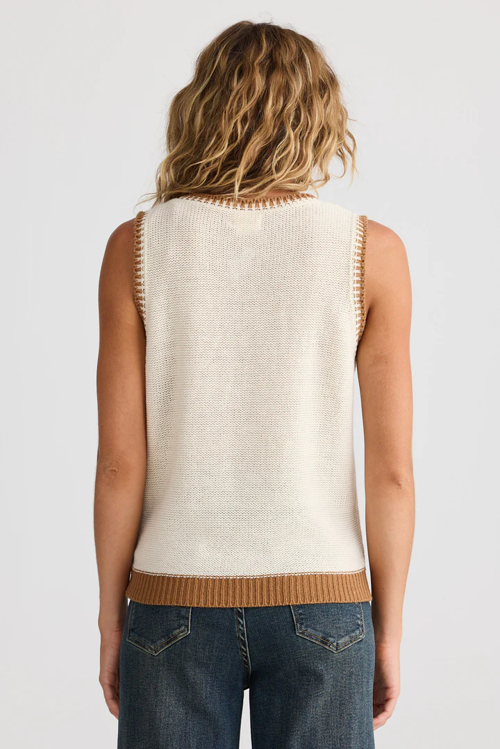 - Contrast blanket stitch detail on neckline and armhole