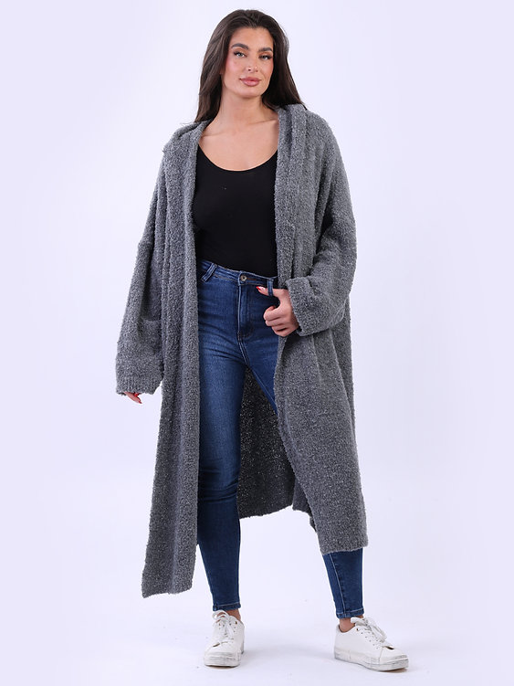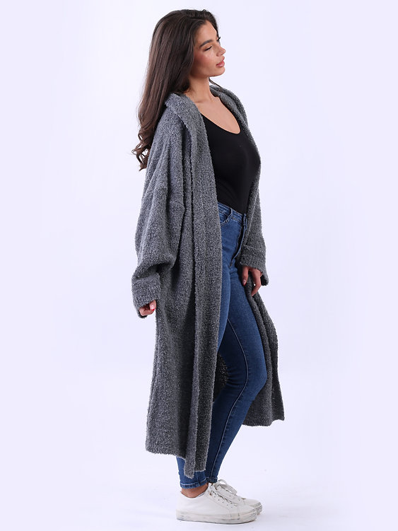 Featuring a generous attached hood and a relaxed, open-front silhouette, this cardigan is designed to provide maximum comfort without sacrificing elegance. Its longline cut offers ample coverage, making it the perfect companion for chilly mornings or cozy evenings.
