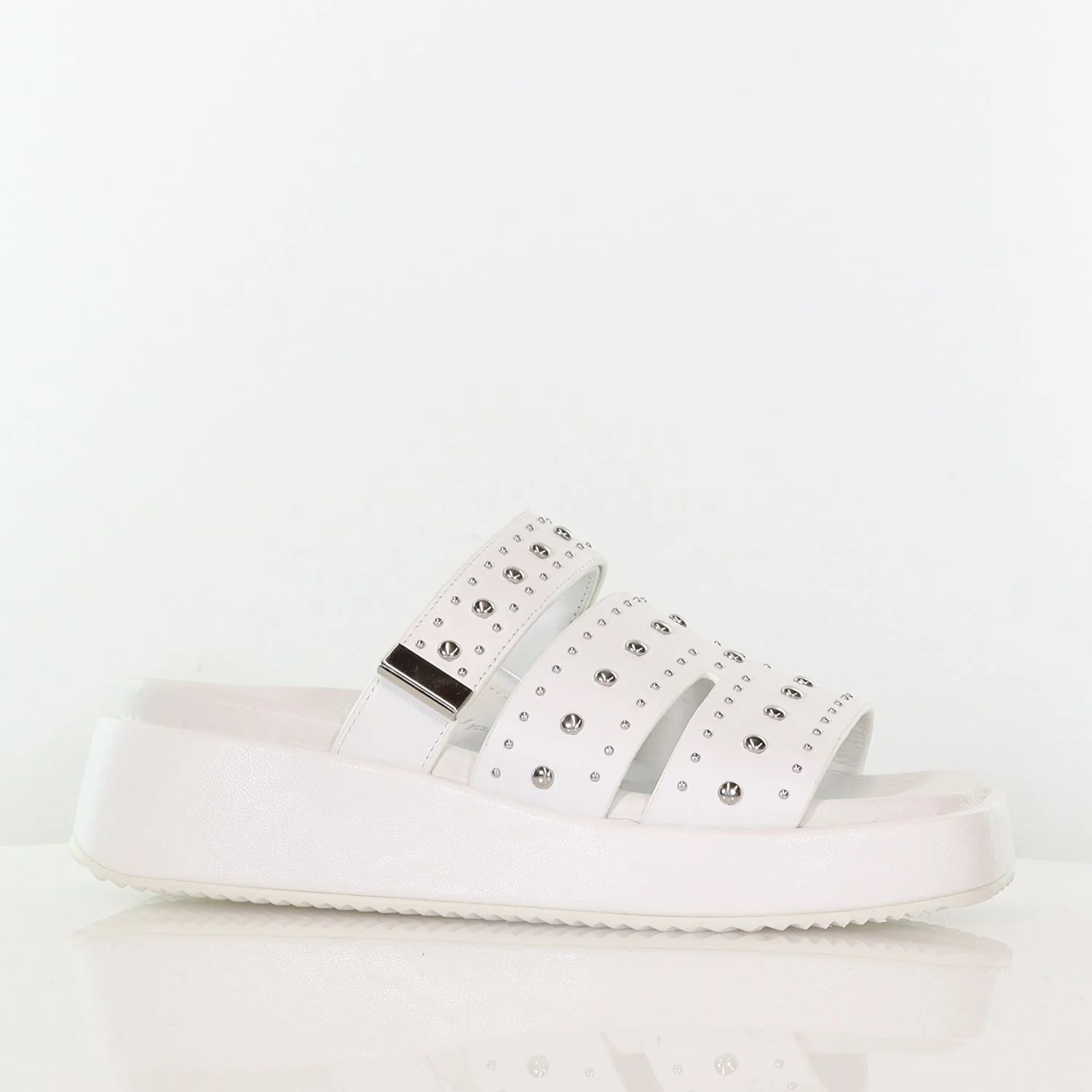Indra Stud is built for laid-back dressing with a bold, elevated edge. The wide leather H-pattern upper is finished with an adjustable velcro strap and statement stud detailing. Set on a raised, squared flatform sole with a low pitch, it delivers effortless elevation with the comfort of a flat sandal. Completed with our contoured Wellness footbed, Indra Stud is versatile, modern, and easy to wear and perfect with denim, utility styles, or oversized basics.