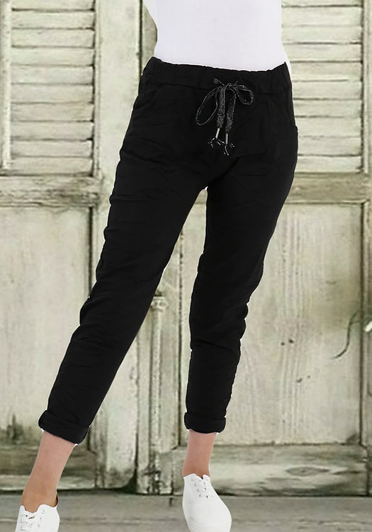 Expertly crafted in Italy, these pants feature the perfect amount of stretch to contour to your body while maintaining a relaxed, effortless look. The intricate lace detailing at the ankle adds a romantic touch, making these the perfect choice for transitioning from a morning coffee date to a semi-formal afternoon event.
