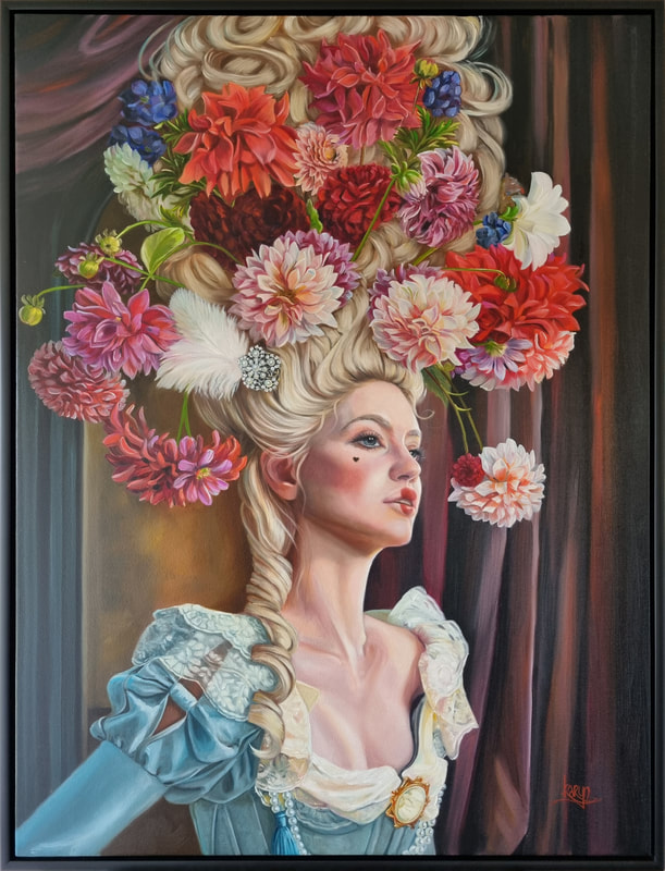 Karyns’ current series “The Aristocrats” tells a story of our ancestors and the excesses of the time of Louis XVI in the 18th century. She loves learning and reading about the history and stories of centuries past. She imagines her portraits hanging in your living rooms and hallways (or drawing rooms, ballrooms or libraries), displayed as if they are your own ancestors…a little bit of fantasy.