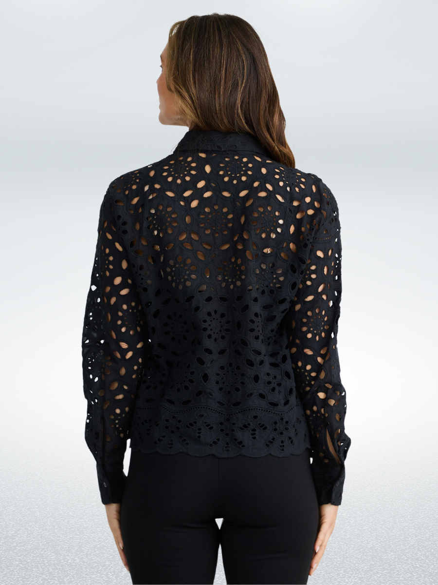- Classic shirt collar with button stand