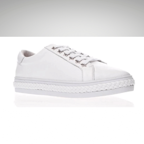 Featuring our iconic platform sneaker sole with a removable memory foam leather sock. Combining a fresh new white leather plaited wrap with classic white leather upper. Fine subtle star eyelets top off this stunning sneaker.