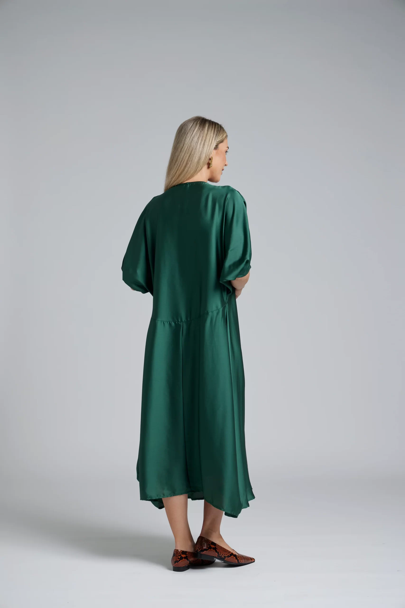 The Remi Dress is a beautifully feminine style designed to bring soft movement and graceful ease to any occasion. With its floaty kimono sleeves, gentle V neckline and signature panelling that flows from the centre front, the silhouette offers a dreamy drape that feels refined yet relaxed.