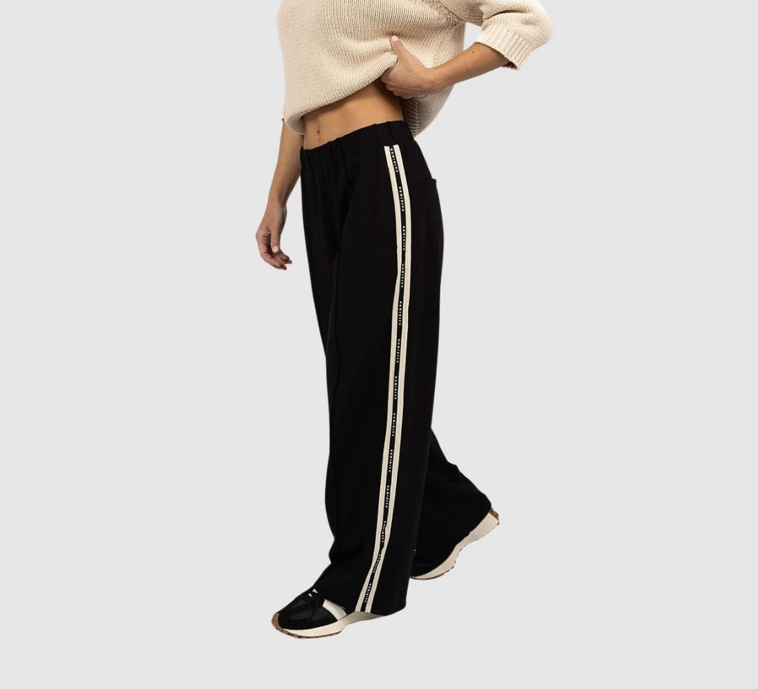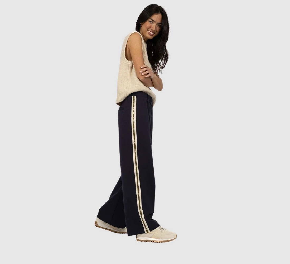 The Roca Pant is your go-to for effortless everyday comfort. Designed with a relaxed fit, elastic waist and handy side pockets, it’s an easy pull-on style that still looks polished. The contrast side stripe adds a sporty edge—perfect for dressing up or down with the matching Mosh top, or the Monet vest.