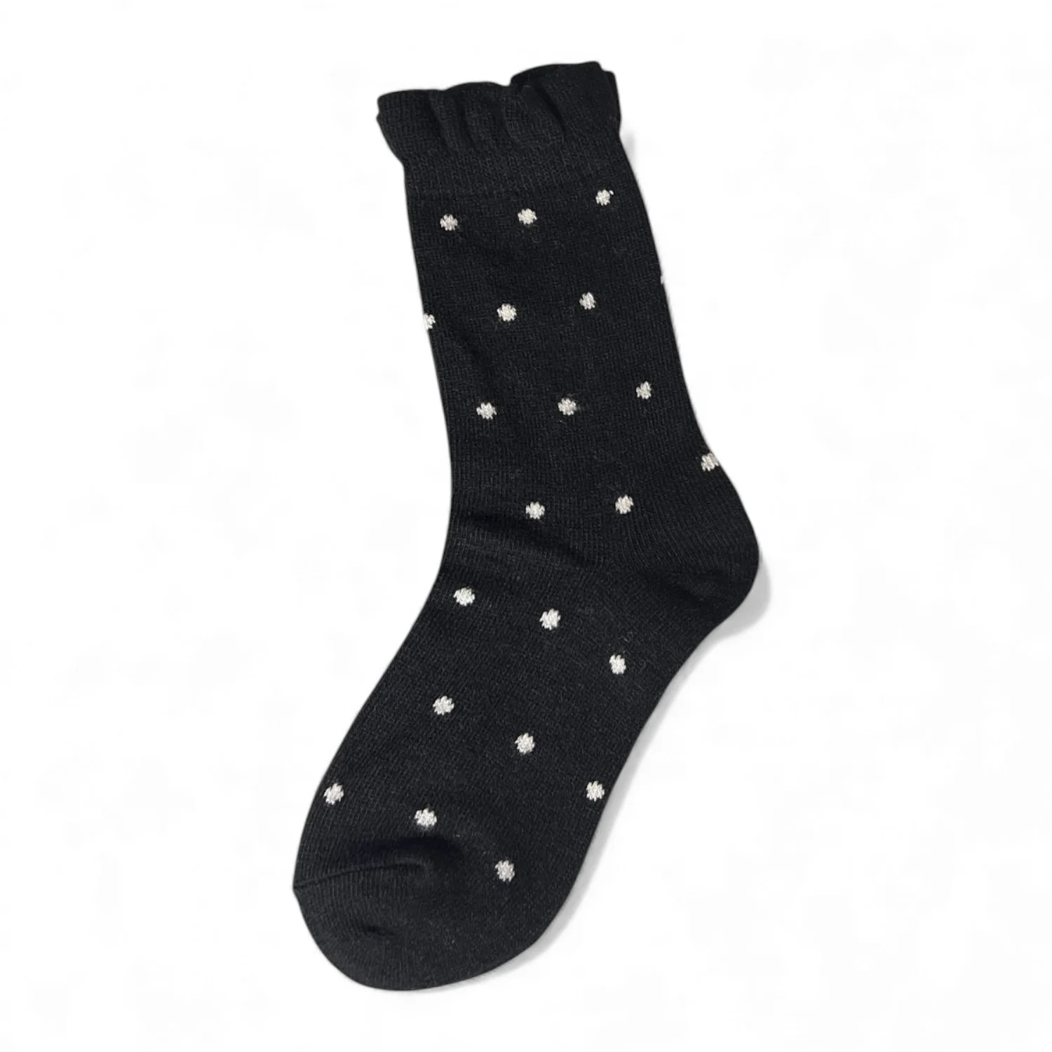 A delicate frill cuff peeks sweetly above your shoe, while the classic polka dot design keeps things timeless and easy to style. Perfect with loafers, sneakers or layered under boots for that subtle statement detail.