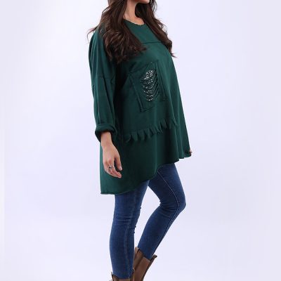 Add a touch of effortless glamour to your everyday rotation with our Plus Size Sequin Cutout Batwing Top. Masterfully Made in Italy from 100% breathable cotton, this piece combines a relaxed, oversized silhouette with eye-catching details. The standout feature is … Read More -
