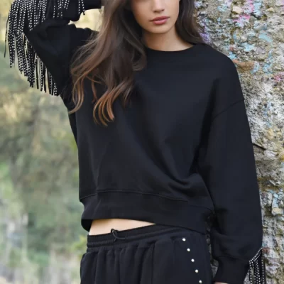Turn up the volume on your casual look with the ‘Fringe Festival’ sweatshirt. Made from our ‘Rock ‘n’ Relax’ cotton sweat shirt material, this cozy drop shoulder style brings laid back vibes with a touch of edge. The studded tassels … Read More -