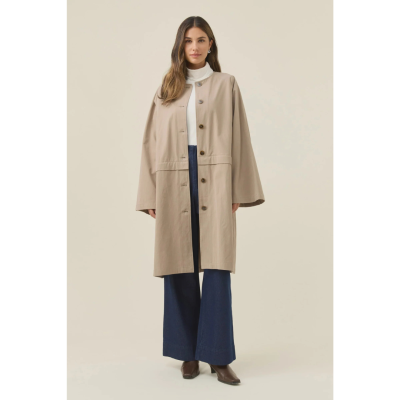 A thoughtfully designed cotton coat with a brushed hand-feel and a clever hidden zipper that transforms it into a cropped jacket. The tortoise shell buttons, welt pockets and wide sleeves bring a soft structure, while the round neckline keeps the … Read More -