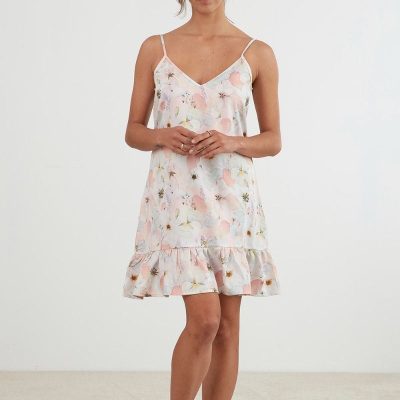 Petals; this blush pink sateen, pressed flower-inspired nightie features a ‘v’ neck and back design with adjustable straps and a frilled hem. Made from 100% cotton sateen. The finished product is OEKO-TEX® Standard 100 certified and approved. Made ethically in … Read More -