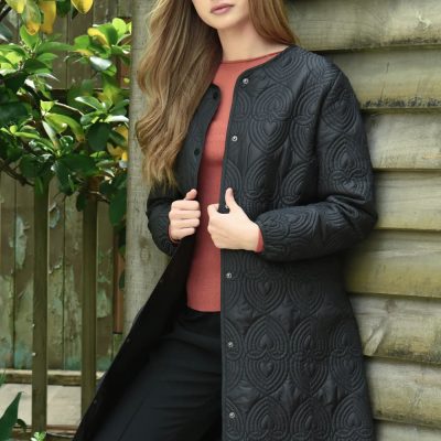 Lightweight yet cosy, the Love It Or Quilt It jacket is your go-to piece for effortless layering through the changing seasons. Crafted from our lightly padded ‘Heart to Heart’ quilted nylon, this jacket features a sleek, collarless silhouette, snap button … Read More -