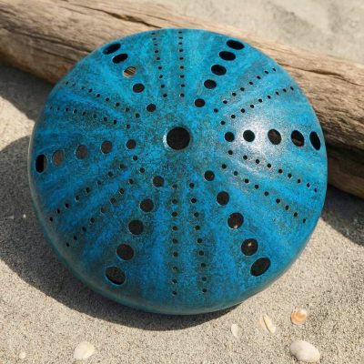 Handmade glass flower earring cut from a recycled bottle and slumped in a kiln to create a lovely three dimensional design. Finished with recycled Sterling Silver stamen and hooks with rubber stoppers for extra security. Based on the New Zealand … Read More -