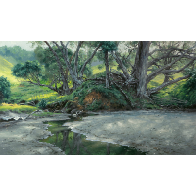Springtime Palette — Sue SchaareOil on canvas | 760 × 1220 mm (approx.) A lush field of wild blooms rises from deep twilight tones into a glow of fresh spring light. Sue Schaare layers rich oils—scarlet poppies, soft creams, and … Read More -