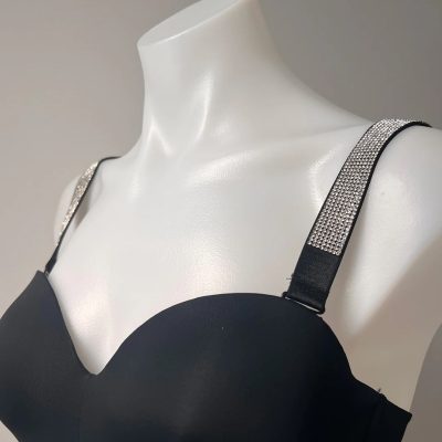 Glam Upgrade! Add a touch of sparkle with these soft satin elastic bra straps, 2cm wide and adjustable with hook closures. Featuring a dazzling 6cm diamante panel. Easily clip these onto your favourite strapless bra for an instant glam upgrade. … Read More -